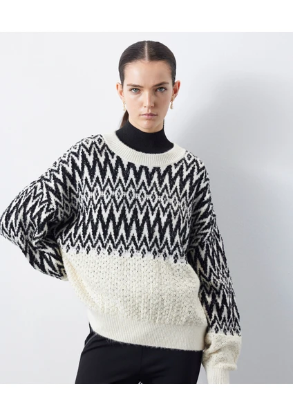 İpekyol Jakarlı Kazak Bu İpekyol Jakarlı Kazak, soğuk hava gardırobunuza zarafet katmak için mükemmel, sofistike ve şık bir parçadır. Karmaşık jakarlı örgü tasarımı sayesinde zengin bir doku ve görsel çekicilik sunar. Hem günlük hem de daha şık kombinler için ideal olan bu kazak, sıcaklık ve rahatlık sağlarken şık bir görünümünü korur. Çok yönlü tasarımı sayesinde katmanlamak veya tek başına dikkat çekici bir parça olarak giymek için harika bir seçimdir.