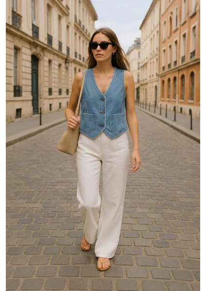 Günlük stilinize modern ve rahat bir hava katmak istiyorsanız, bu açık mavi jean yelek tam size göre! %100 pamuk kumaştan üretilen cepli tasarımı sayesinde hem konforlu hem de şık bir görünüm sunar. Hafif yapısı sayesinde mevsim geçişlerinde ideal bir parça olurken, cepli detayı da fonksiyonelliği artırır. Sade tişörtler, gömlekler ya da elbiseler üzerine kolayca kombinlenebilen bu jean yelek, şehir hayatında ve hafta sonu gezilerinde tarzınızı öne çıkarır. Açık mavi rengi ile zamansız bir şıklık sunan bu model, her kadının dolabında yer alması gereken tamamlayıcı bir parça. Gardırobunuza kullanışlı ve trend bir yelek eklemek istiyorsanız, bu jean yeleği hemen sepetinize ekleyin!