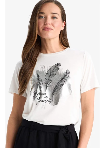DeFacto Regular Fit Bisiklet Yaka Baskılı Kısa Kollu Tişört F3556AX25SM