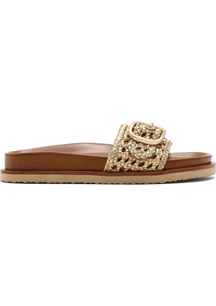 Kadın Altın Tokalı Hasır Deri Terlik 25SFD5505M7