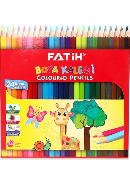 24 renkten oluşan Fatih kuru boya kalem seti, elleri yormayan üçgen gövde tasarımı ve kaymayı engelleyen yumuşak tutuş özelliği ile çocukların severek kullanabileceği kuru boyalardan biridir. Parlak ve canlı renklere sahip boyalar, yoğun renk pigmentleri ile yüksek örtücülüğe sahiptir.
