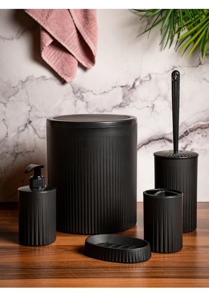 Giorsi Büyük Banyo 5’li Set Çöp Kovası 6 Litre Siyah