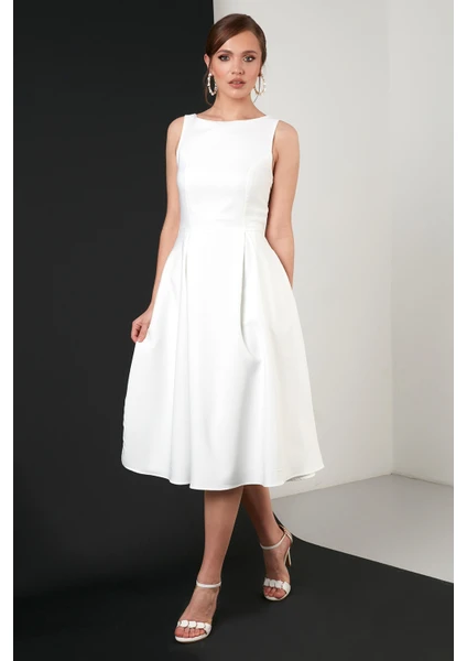 Lela Bisiklet Yaka Cepli Pileli Midi Elbise Bayan Elbise 6051963