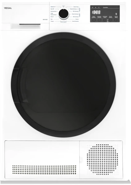 Bu, 9 kg kapasiteli ve B enerji sınıfına sahip beyaz bir Regal KM 9102 B Kondenser Kurutma Makinesi'dir. Dijital kontrol paneli, 112 litrelik tambur ve 65 dB ses seviyesine sahiptir.