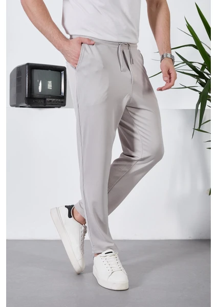 Hafif ve Nefes Alabilir Erkek Diagonal Dokulu Beli Lastikli Pantolon - Gri